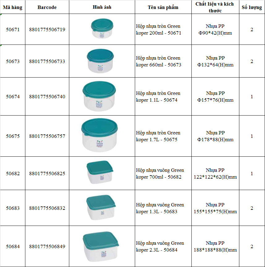 + Hộp nhựa tròn Green Koper 660ml: 2 hộp