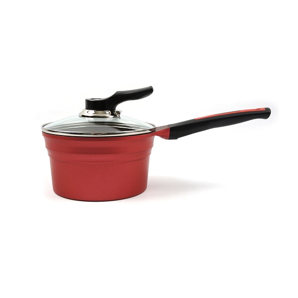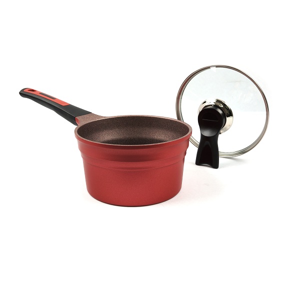 Màu sắc: Thân ngoài phủ sơn đỏ, lòng nồi phủ đá granit, vung thủy tinh, tay cầm nhựa màu đen