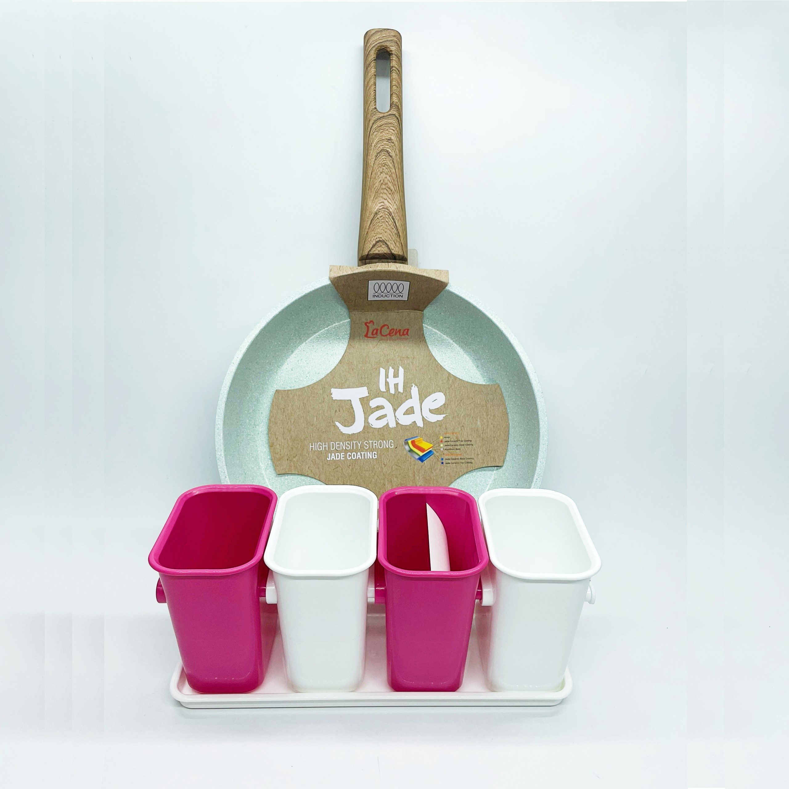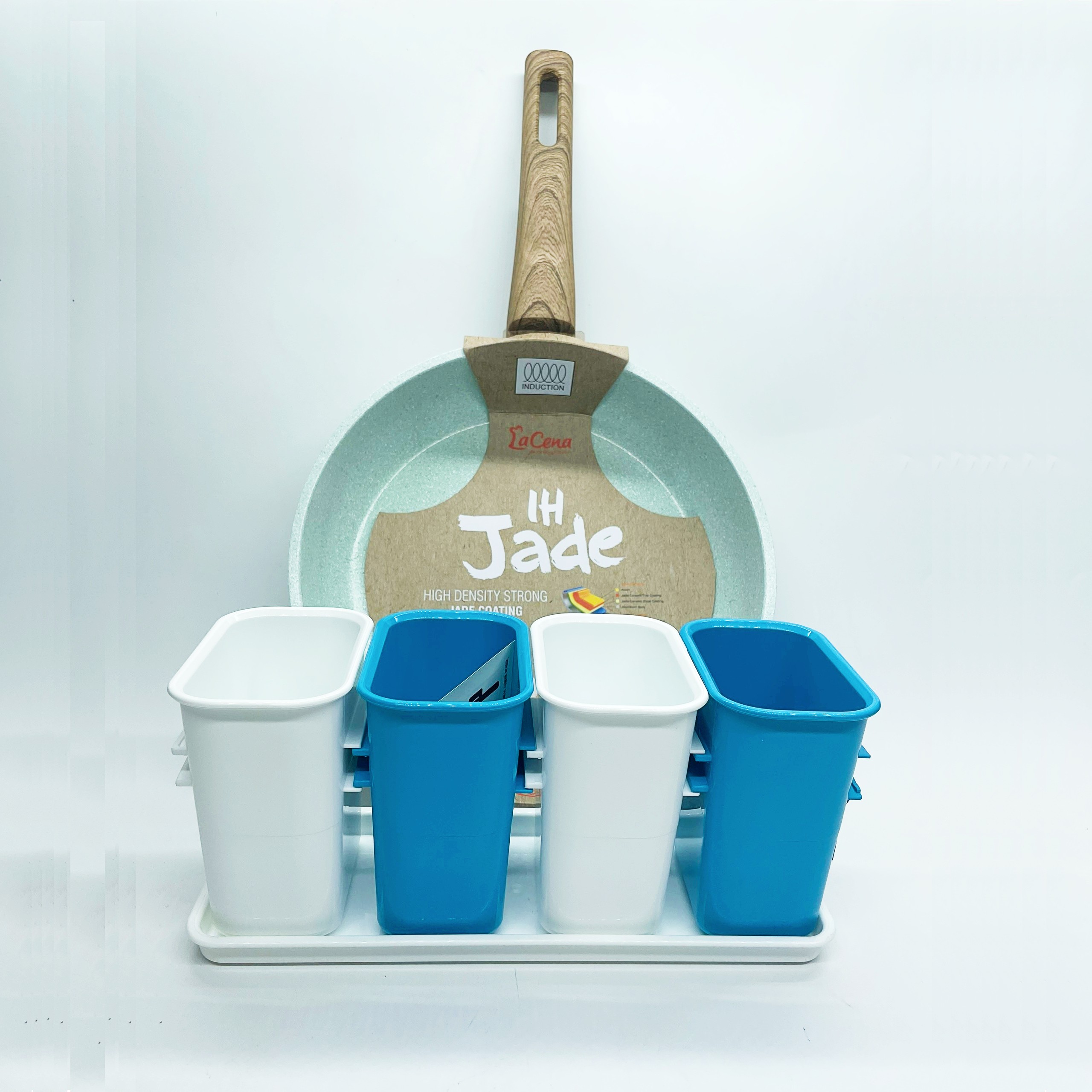 COMBO CHẢO CHỐNG DÍNH + SET 4 KHAY ĐỰNG ĐỒ ĐA NĂNG